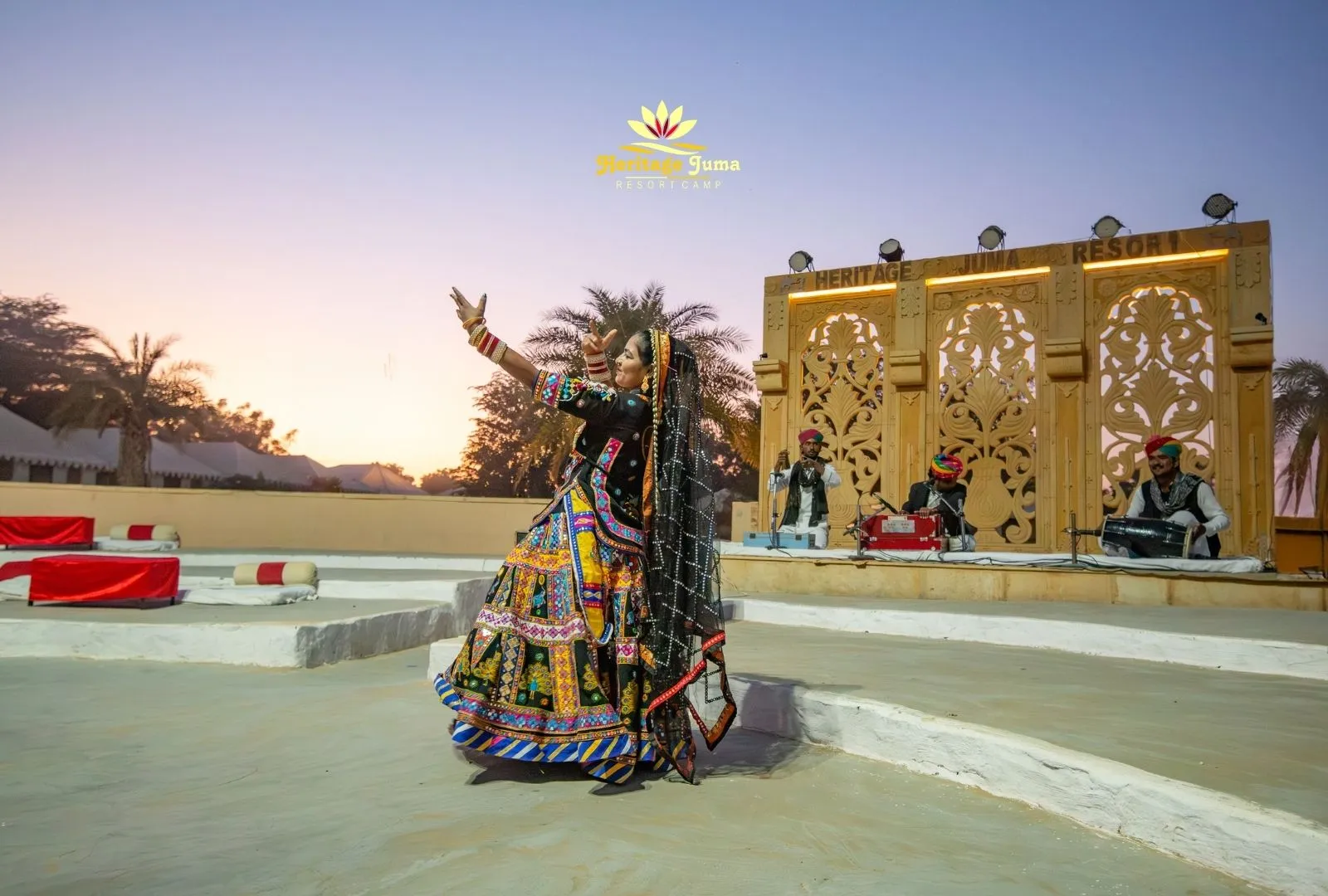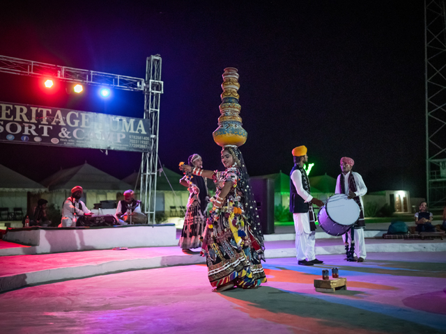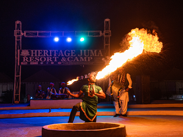Jaisalmer is the ideal location for bonfire nights and Rajasthani folk programs. The ideal vacation plan is to stay in Jaisalmer's desert camps and enjoy every beautiful element there to create a new page in your memories. Heritage juma resort camp offers a variety of Rajasthani cultural activities for guests to participate in and create lasting memories. They provide a cultural evening filled with folk dances and songs, bonfires on dunes, and a perfect evening that could not have been imagined for every visitor! Kalbelia, Kachhi Ghodhi, and Ghoomar are some of the most well-known Rajasthani dance genres performed by tribal women and men. Folk musicians dress up in bright costumes and perform in front of large crowds. As a result, seeing them perform is an absolute delight. Enjoy the traditional performances while trying your hands at our delicious snacks, drinks, and hookah! If you enjoy dancing, these dancers can even teach you some signature moves!