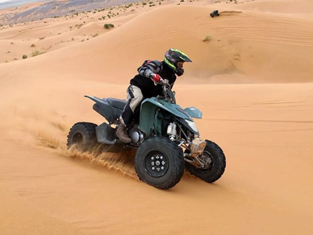 Quad Biking allows you to explore the desert on a four-wheel motorbike and quench your thirst for adventure. Make the most of it at a thrilling 20-25-minute journey through the dunes.