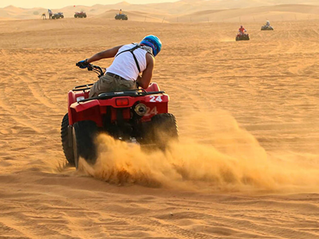 You will be guided by trained experts as you ride for an hour in the golden dunes on the Quad Biking.